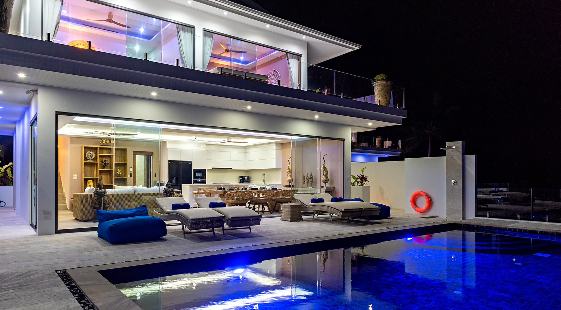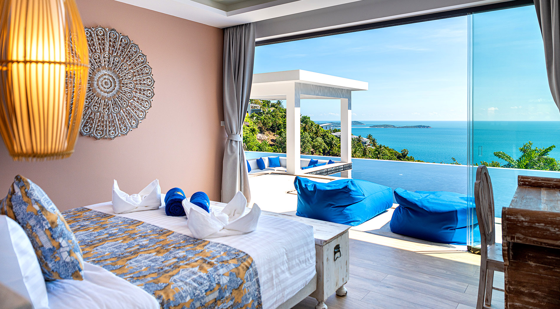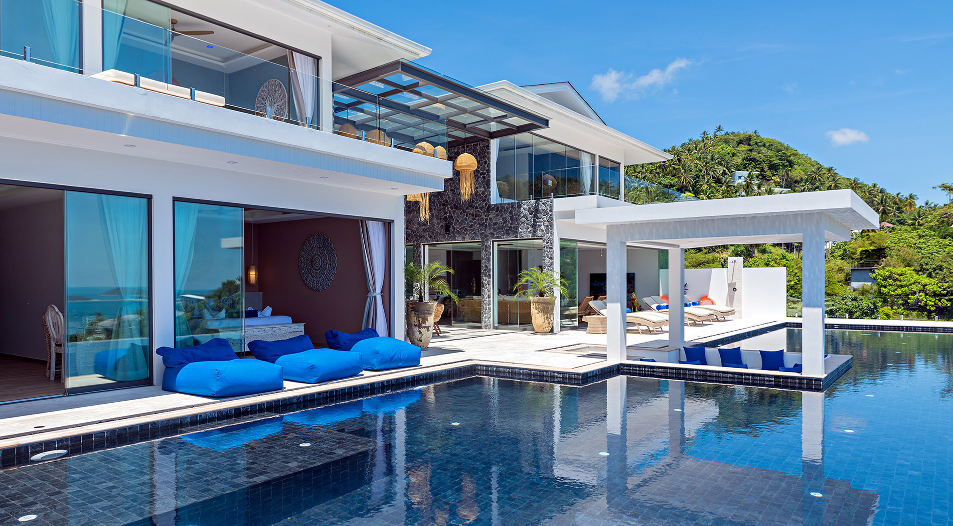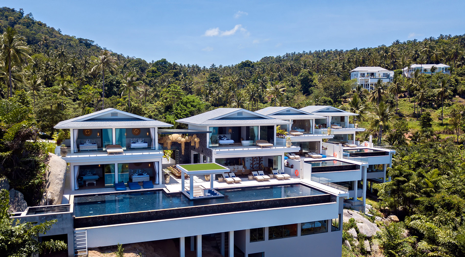 Located in Chaweng Noi, on the east coast of the island of Koh Samui, The Blue Mountain Villas is made up of 3 villas with 4 to 6 comfortable bedrooms.